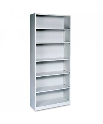 Add to cart Metal Bookcase, Six-Shelf, 34.5w x 12.63d x 81.13h, Light... $1,145.00 34-1/2w x 12-5/8d. Shelves adjust in 1/2" increments. Straight sides and backs allow flush alignment. Shelf count includes bottom of bookcase....
