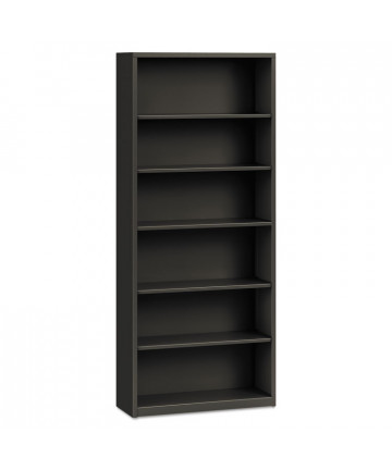 Add to cart Metal Bookcase, Six-Shelf, 34.5w x 12.63d x 81.13h, Charcoal $1,145.00 34-1/2w x 12-5/8d. Shelves adjust in 1/2" increments. Straight sides and backs allow flush alignment. Shelf count includes bottom of bookcase....