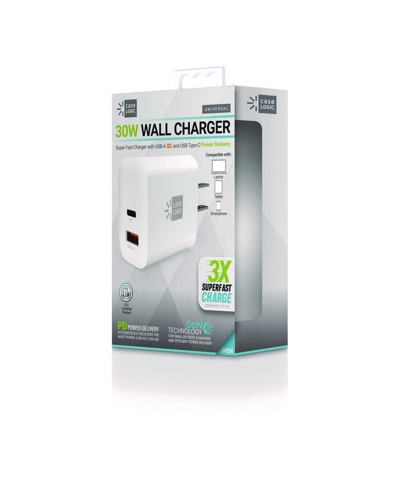 Super-fast charger with USB-A QC and USB Type C Power Delivery. Qualcomm Quick Charge USB charges the battery the fastest way it is designed to be charged. Power Delivery automatically delivers the highest specific power required by the device it is connected to.