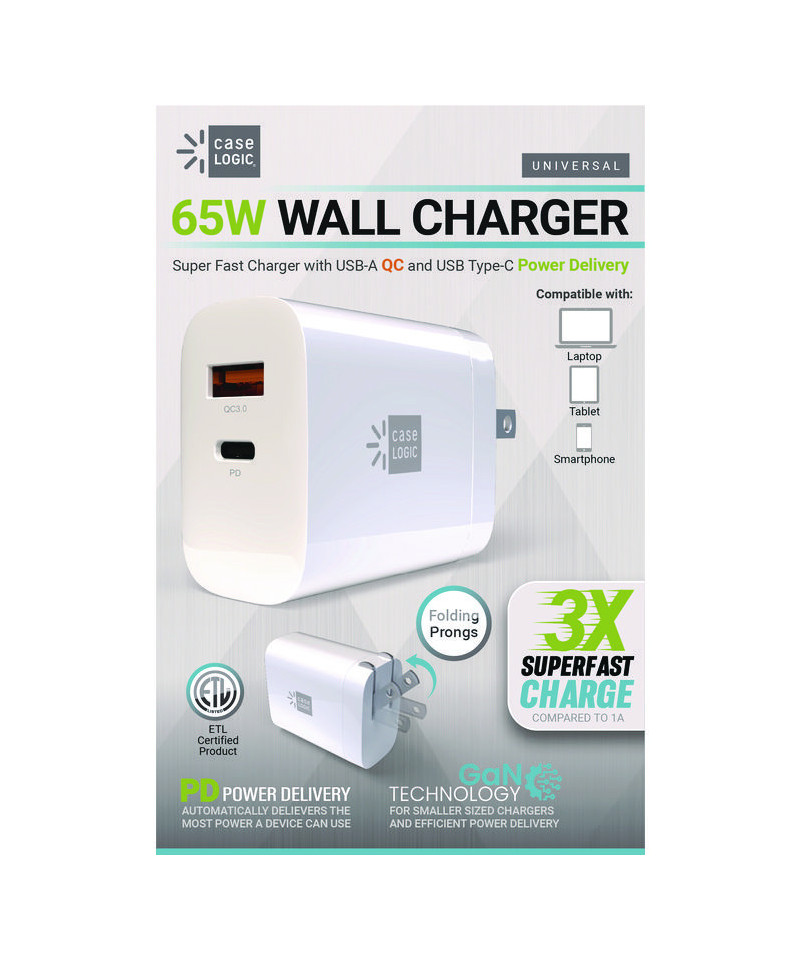 Super-fast charger with USB-A QC and USB Type C Power Delivery. Qualcomm Quick Charge USB charges the battery the fastest way it is designed to be charged. Power Delivery automatically delivers the highest specific power required by the device it is connected to.