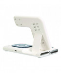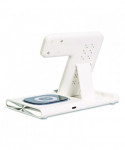 Charge up to three devices at once! Tidy up your space and eliminate cable clutter by charging your phone, watch and earbud case simultaneously. With our included fast charging adapter powered by the Qualcomm QC 3.0 chip, you'll experience lightning-fast charging speeds. The stand features a magnetic holder to keep your phone and watch securely in place and even has a light in the base for added convenience. This high-quality charging stand is perfect for your desk or usual charging area, combining functionality with sleek design. Folding design makes it convenient for travel!