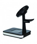 Charge up to four devices at once! Tidy up your space and eliminate cable clutter by charging your phone, watch and earbud case simultaneously. Plus, there's an extra USB port for an additional device. With our included fast charging adapter powered by the Qualcomm QC 3.0 chip, you'll experience lightning-fast charging speeds. The stand features a magnetic holder to keep your phone and watch securely in place and even has a light in the base for added convenience. This high-quality charging stand is perfect for your desk or usual charging area, combining functionality with a sleek design.