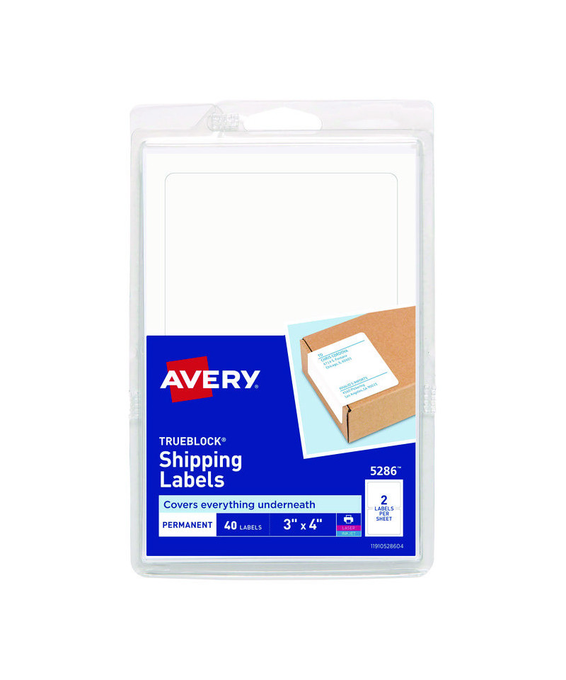 Shipping Labels with TrueBlock Technology, Inkjet/Laser Printers, 4 x 3, White, 2/Sheet, 20 Sheets/Pack