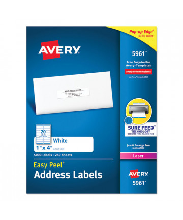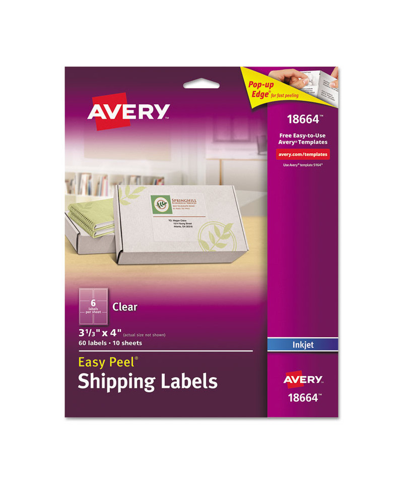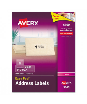 All your mailing is easier with these Clear Easy Peel® Mailing Labels. Labels virtually disappear on white and light colored surfaces. These labels feature exclusive Avery® Sure Feed® technology to improve print alignment and avoid jamming. The blue, textured strip on the top of each sheet provides better grip for printer rollers and helps feed the sheet through your printer. Ultrahold® permanent adhesive makes sure that these labels stick and stay without peeling, curling or falling off. The Pop-up Edge offers fast peeling--just bend the label sheet to expose the label edge, peel, then fold the sheet back to flat in a jiffy. They're also great as gift tags or as ID and organization labels. Easily import names, addresses and logos and print on your labels with free templates and designs from Avery® Design & Print. Get pages of professional-looking labels filled with eye-catching text and graphics.