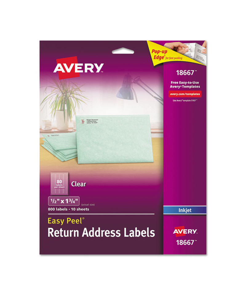 All your mailing is easier with these Clear Easy Peel® Mailing Labels. Labels virtually disappear on white and light colored surfaces. These labels feature exclusive Avery® Sure Feed® technology to improve print alignment and avoid jamming. The blue, textured strip on the top of each sheet provides better grip for printer rollers and helps feed the sheet through your printer. Ultrahold® permanent adhesive makes sure that these labels stick and stay without peeling, curling or falling off. The Pop-up Edge offers fast peeling--just bend the label sheet to expose the label edge, peel, then fold the sheet back to flat in a jiffy. They're also great as gift tags or as ID and organization labels. Easily import names, addresses and logos and print on your labels with free templates and designs from Avery® Design & Print. Get pages of professional-looking labels filled with eye-catching text and graphics.