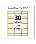 White Easy Peel Mailing Labels with Metallic Border, Inkjet/Laser Printers, 1 x 2.63, White, 30/Sheet, 10 Sheets/Pack