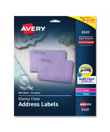 Matte white labels with a metallic border add a premium look for mailing and organizing. Bend the Easy Peel® label sheet to expose the Pop-up Edge® label feature for fast peeling; the sheet stays intact and goes back to flat. Easy to customize with free templates and designs at avery.com/templates. 8.5" x 11" sheets for laser or inkjet printers.
