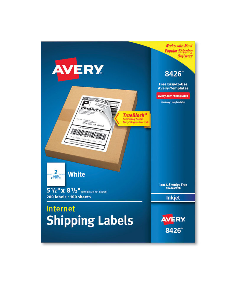 Shipping Labels with TrueBlock Technology, Inkjet Printers, 5.5 x 8.5, White, 2 Labels/Sheet, 100 Sheets/Pack, 2 Packs