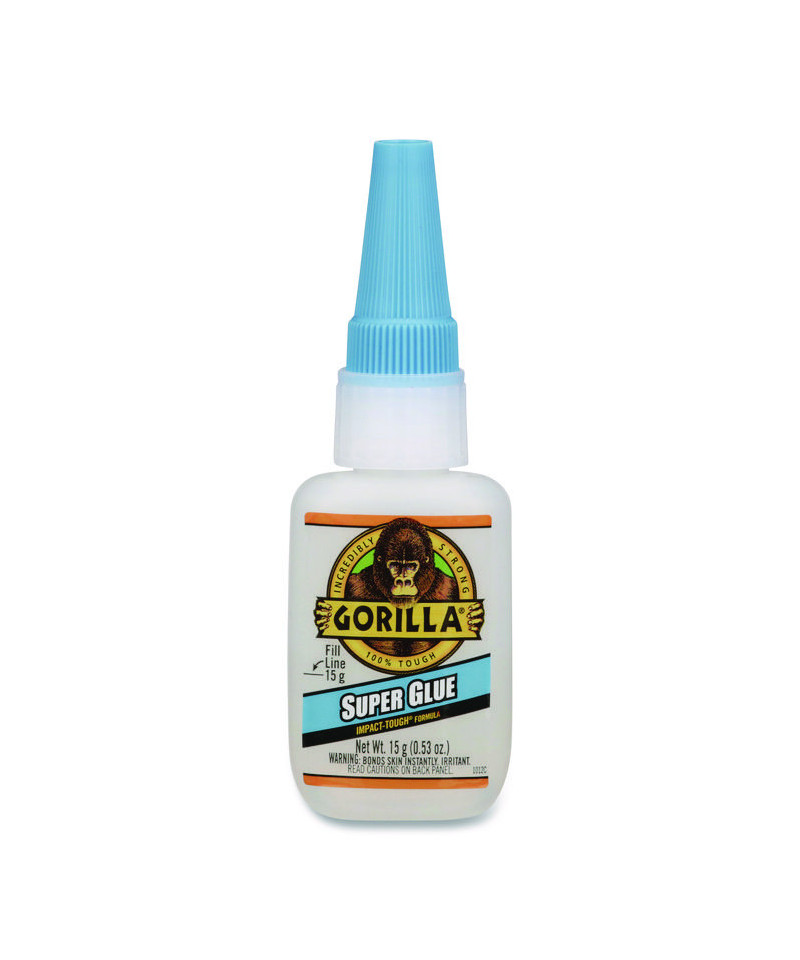 High strength and quick set time make Gorilla Super Glue the go-to for a variety of projects. Developed for long-lasting repairs in an instant, and designed with an impact-tough formula to handle bumps and drops with a strong, reliable bond. Anti-clog cap keeps glue from drying out. Fast-setting and dries in 10-45 seconds with no clamping required. Versatile and bonds plastic, wood, metal, ceramic, rubber, leather, paper, and more. It's Gorilla Tough use after use.