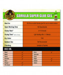 Gorilla® Super Glue Gel is an easy-to-use, thicker and more controlled formula great for multiple surfaces and vertical applications. Impact tough and reinforced to increase impact resistance and strength. Anti-clog cap keeps glue from drying out. Versatile and bonds plastic, wood, metal, ceramic, rubber, leather, paper and more. Fast setting and dries in 10-45 seconds with no clamping required.