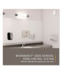 Rubbermaid Commercial Products Microburst delivers air freshener with Microtrans Odor Neutralizer to eliminate odors. Pharmaceutical-grade steel valve distributes a diverse selection of high quality fragrances in a fine mist to terminate washroom odors. Ready-to-use out of the box, it features smart chip technology for maximum odor control from 30 to 168 days with flexible programming options. With a "Days to Refill" indicator to remind staff when needed refills are approaching.