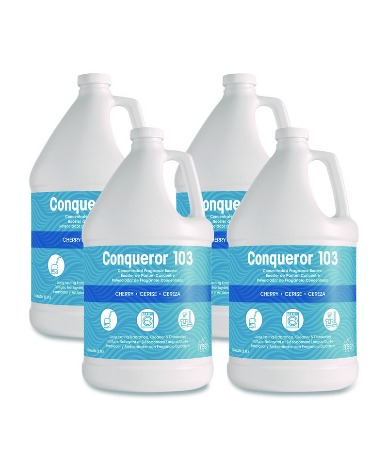 Conqueror 103 odor counteractant concentrate is specially formulated with a high fragrance load for maximum odor control. Its versatility allows it to be used on hard surfaces, carpet, in foggers, in mop water, trigger sprayers and much more. Conqueror 103 can be used full strength for stubborn problem areas or diluted for lighter jobs. Use it by itself or mixed with your favorite cleaner for a boost of fragrance.