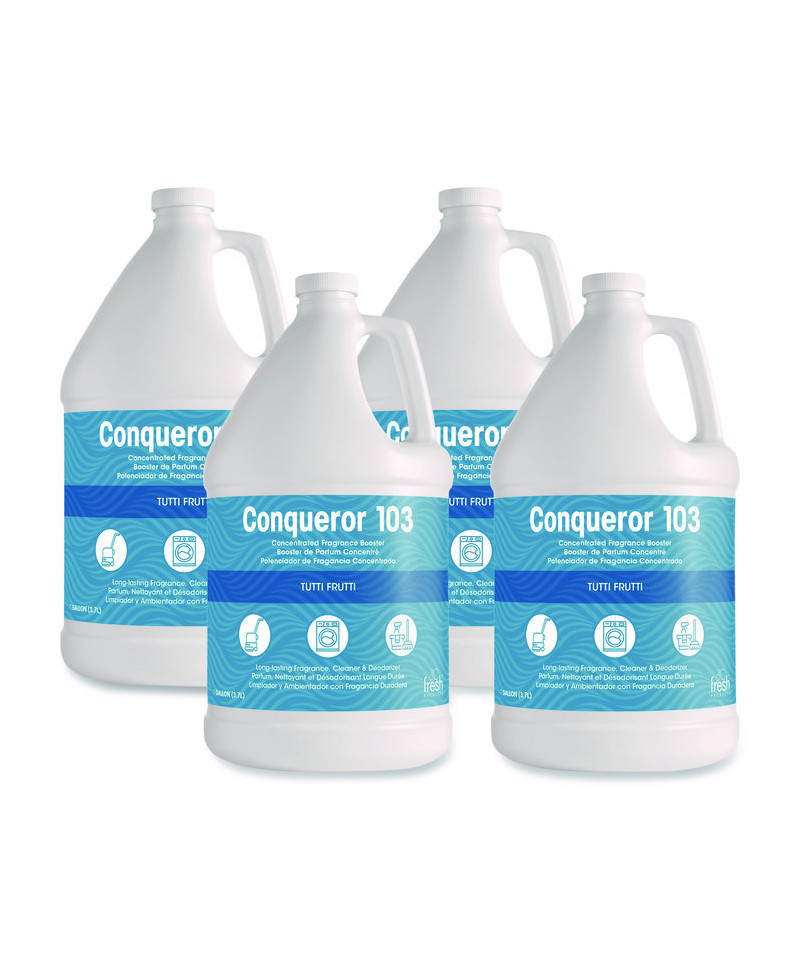 Conqueror 103 odor counteractant concentrate is specially formulated with a high fragrance load for maximum odor control. Its versatility allows it to be used on hard surfaces, carpet, in foggers, in mop water, trigger sprayers and much more. Conqueror 103 can be used full strength for stubborn problem areas or diluted for lighter jobs. Use it by itself or mixed with your favorite cleaner for a boost of fragrance.