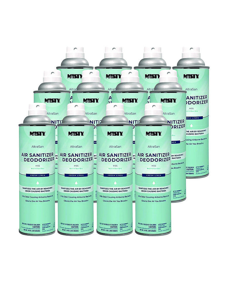 Strong air sanitizer destroys odor-causing bacteria, completely freshening an area. Excellent for controlling the toughest odors, even animal smells. Nonflammable, low-VOC, ultra dry hydro-alcoholic formula. Contains no petroleum distillates or hydrocarbon propellants. EPA registered—not for sale in CA.