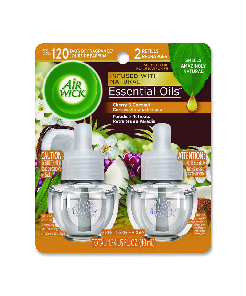 Leave a lasting impression on guests and ensure a consistent experience with Air Wick Scented Oil Refills with Essential Oils. Keep supply rooms stocked with the pleasant scents your guests come to associate with your business. Get up to 60 days per refill, on the lowest warmer setting, of natural-smelling fragrance with essential oil-infused formulas. Easily refill the Air Wick plug-in warmer by unscrewing the cap and inserting the refill until it clicks. Adjust the warmer settings to ensure the optimal fragrance for each room. Enhance entrances, common areas, offices, breakrooms and guest rooms with pleasant scents.