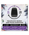 Once started, the device automatically shuts off after 8 hours, restarting at the same time the next day - 8 hours on, 16 hours off. No water needed as it contains natural essential oils that diffuse into a mist through microscopic holes in the vibrating plate. Battery operated for placement anywhere. Each refill lasts up to 45 days on the lowest intensity setting. Batteries included.