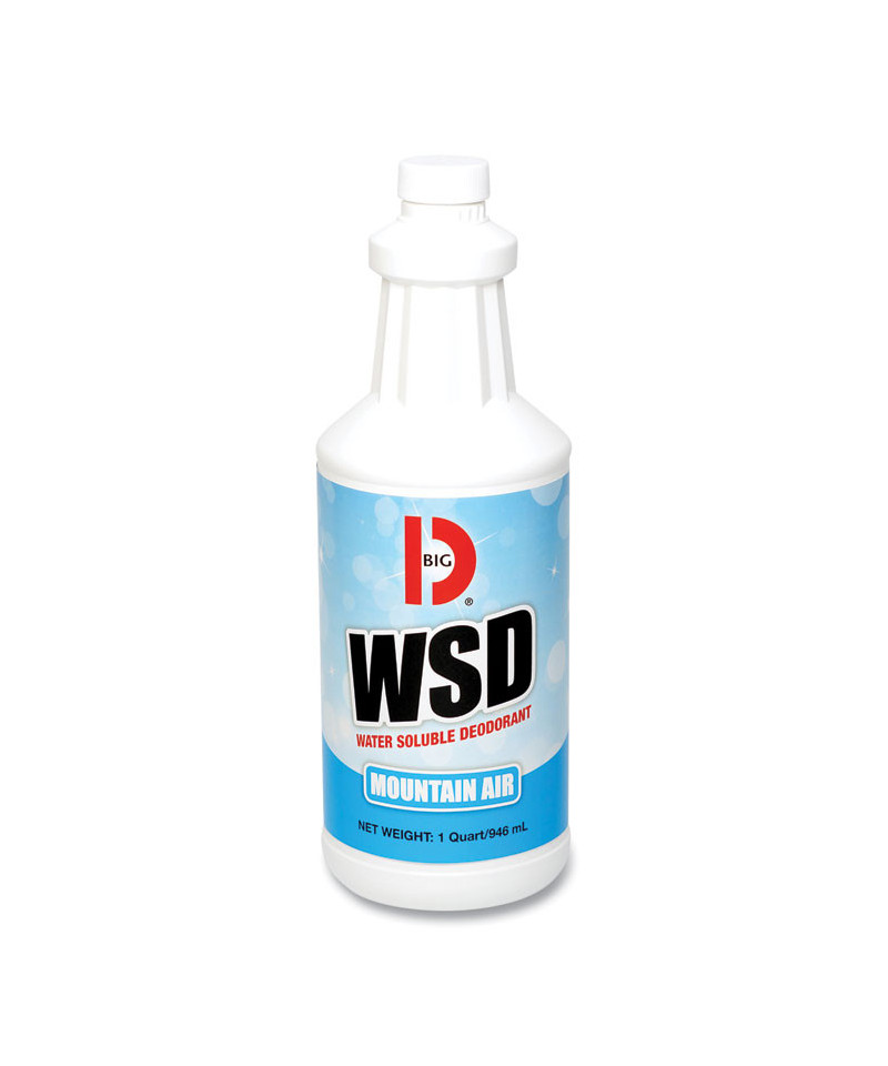 BIG D® Water-Soluble Deodorant is concentrated, easy to use and effective. Just a small amount added to water or other cleaning products will destroy odors on contact without changing the properties of the cleaner. BIG D® deodorants actually eliminate odors, not just mask them. And they are safe nontoxic, nonflammable and will not stain any material unaffected by plain water. WSD is versatile. Use it for mopping, shampooing, rinsing or in a hand sprayer or fogger. BIG D® Water-Soluble Deodorant is ideal for use with carpet or upholstery. It removes odors associated with pets, food, mustiness, vomit, smoke and more. Use anywhere there's an odor problem or possible odor problem: In mop water, in the washing machine, in the humidifier, in the sick room, around the farm or ranch. Use anywhere any kind of cleaning operation is underway.