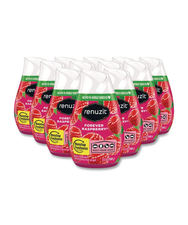 Renuzit Cone Air Fresheners are great for small spaces and lasts up to 30 days. Made with 98% biodegradable gel. Adjust the cone to get the level of fragrance to keep your facility smelling fresh.