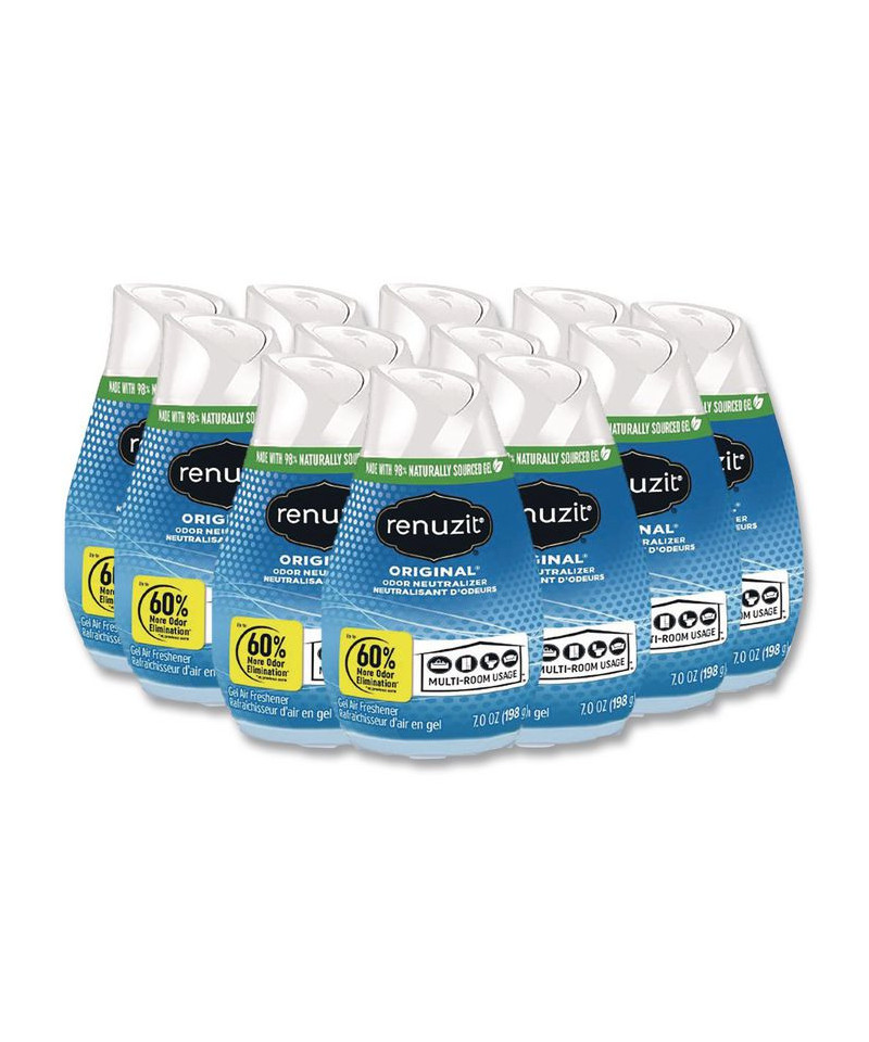 Renuzit Cone Air Fresheners are great for small spaces and lasts up to 30 days. Made with 98% biodegradable gel. Adjust the cone to get the level of fragrance to keep your facility smelling fresh.