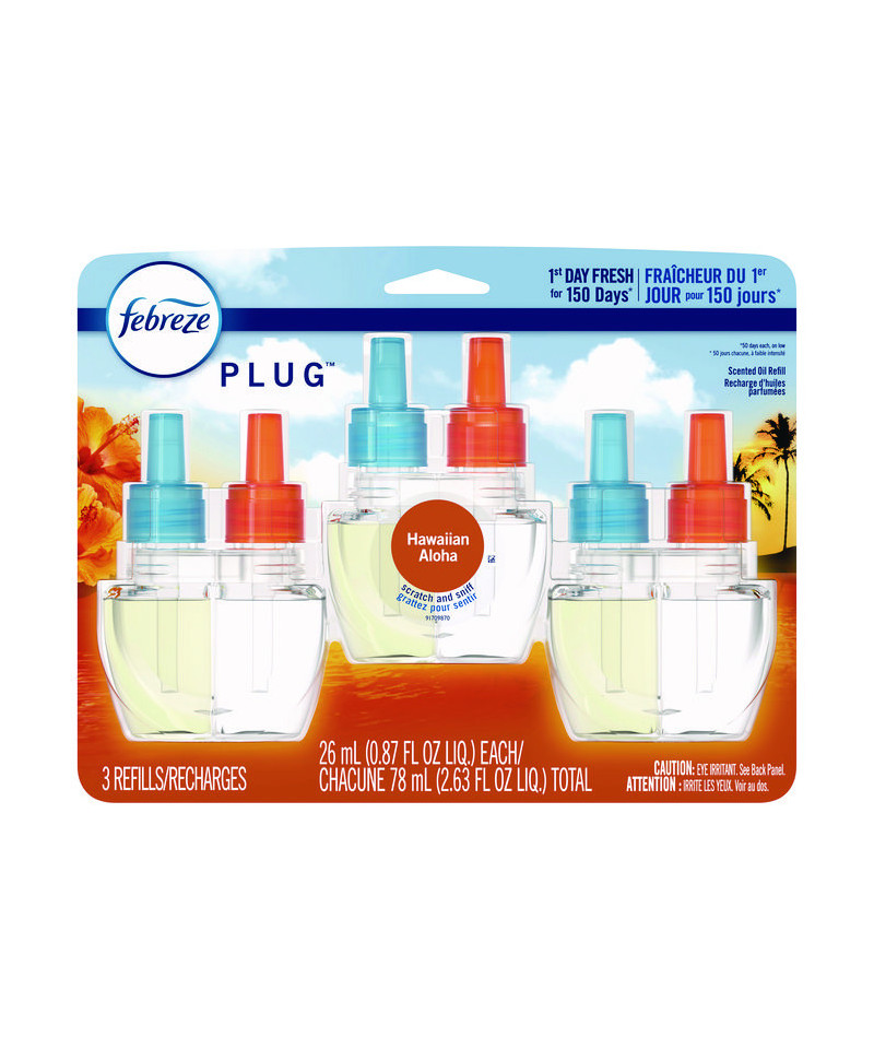 Have you experienced your plug air freshener scent fading? Good news! Febreze Fade Defy PLUG Air Freshener stays true to its name, delivering a first day fresh that lasts a full 50 days (on low setting). Ready to hit refresh and be an A+ odor fighter? Just refill the Febreze Fade Defy PLUG and plug it into any outlet (they'll even rotate if your outlet is upside down) in any high-traffic area of your home… the kitchen, bathroom, or anywhere else odors like to linger. Bonus? When it's time for a refill, the automatic air freshener will let you know with its handy low-level indicator light. And this scent refill pack comes with four Fade Defy PLUG refills so you can keep that freshness going. Looking for an instant burst of fresh on funky fabrics? Give Febreze Fabric Refresher a try.