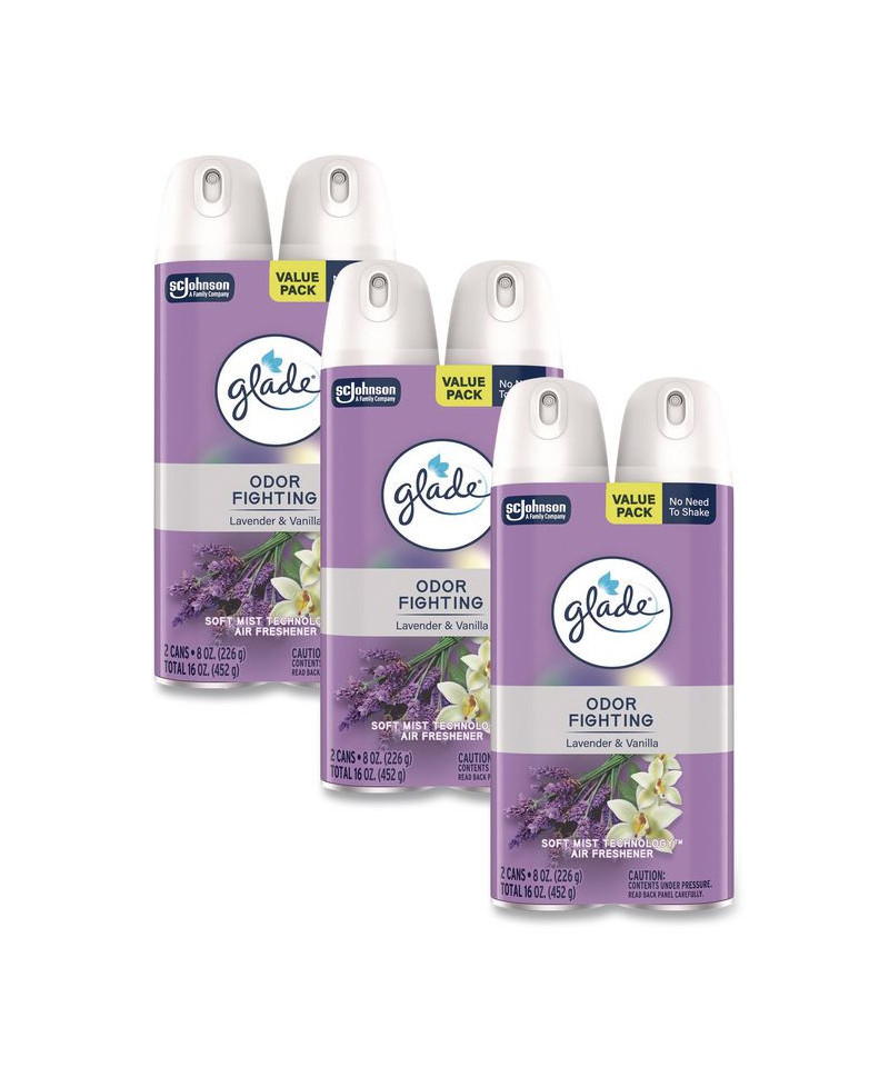 Air Freshener, Lavender and Vanilla, Scent, 8.3 oz Aerosol Spray, 2/Pack, 3 Packs/Carton