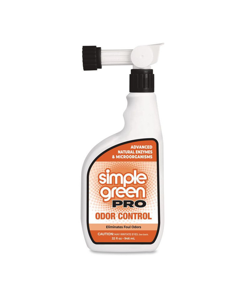 Simple Green® Pro Odor Control neutralizes odors using advanced natural enzymes and microorganisms. The long-lasting, concentrated formula works on wet or dry surfaces, indoors and out. Use anywhere organic odors form. Neutralizes foul smells in public restrooms, fleet vehicles, dumpsters, farms, gyms, locker rooms, animal quarters, motels, schools and more. Eliminates odors caused by decayed vegetation, food, garbage, graywater, animals, manure, mold, mildew, skunk, sweat, urine, vomit and other stubborn smells. Keeps areas smelling fresh.