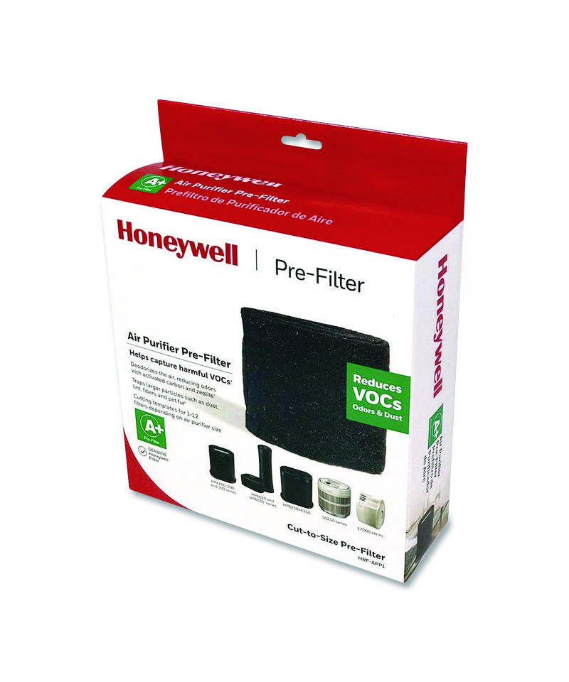 Honeywell Pre-Filters effectively deodorize the air and trap larger particles such as dust, lint, fibers and pet fur. Enjoy the many comforts associated with surrounding yourself with a pristine breathing experience all year round with Honeywell Pre-Filters. Using Honeywell Household Odor and Gas Reducing Universal Pre-filters is also an excellent way to boost and maximize the performance of a HEPA filter. Formulated with activated carbon and zeolite, Honeywell Pre Filter A+ provides extra odor reduction while reducing VOCs. It's a combination that makes these air purifier pre filters excel in reducing household odors such as those from pets, cooking and smoke. Premium odor filters can also be extremely effective in capturing particular household gases such as ammonia and the gases from cleaning products, paint and furnishings.