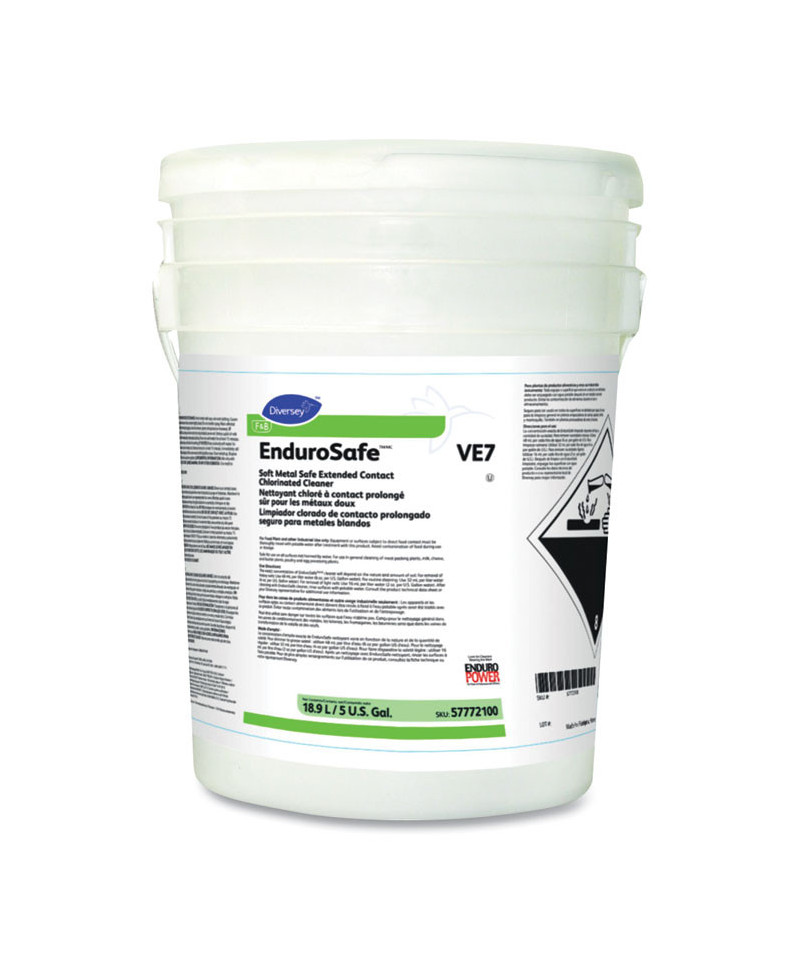EnduroSafe cleaner is a soft metal-safe, heavy duty chlorinated alkaline product designed for extended contact cleaning in a wide range of food and beverage processing operations.