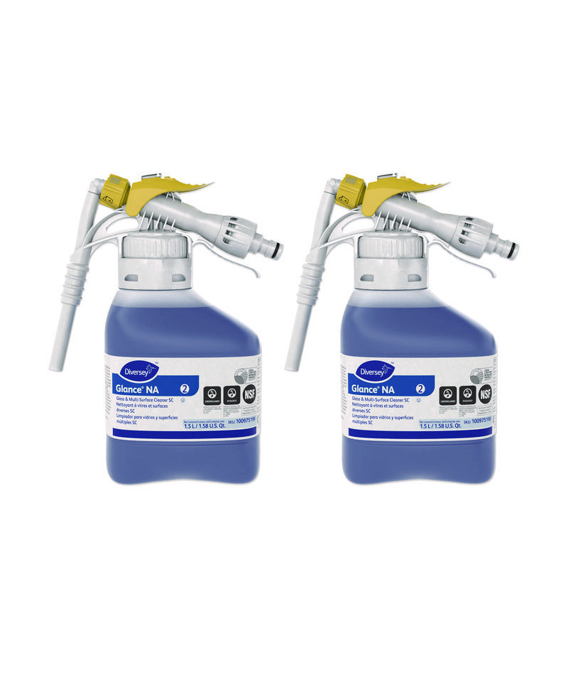 Non-streaking, quick-drying, non-ammoniated glass cleaner. Use on most washable surfaces, including chrome, stainless steel, bathroom fixtures and laminate countertops. Blue in color with no fragrance added. Innovative SmartDose system for easy and accurate dosing.