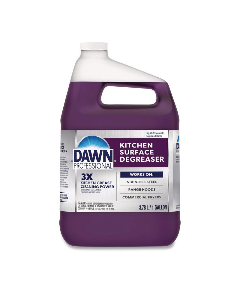 Dawn® Professional Kitchen Surface Degreaser is powerful on the toughest oil and grease found in commercial kitchens to clean range hoods, stoves and ovens, stainless steel surfaces, commercial fryers and more. It is also suitable to clean commercial kitchen surfaces such as backsplashes and counters. This concentrated alkaline-based degreasing formula cuts through grease and oil and designed specifically for food grease. Dawn® Professional Kitchen Surface Degreaser has 3X kitchen grease cleaning power: cuts grease, fast-acting, and is professional strength.