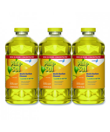 With Pine-Sol® Multi-Surface Cleaner Concentrated you only need one cleaner to fight tough dirt, grease and grime. This scented Pine-Sol gives you 5x cleaning action as it deodorizes, cuts through grease, removes grime, tackles tough dirt and removes 99% of allergens, all while leaving a clean scent. Pine-Sol® cleans (almost) anything and is suitable for use on sealed wood, tile, stone, porcelain, glass and more when used as directed. Do not use on marble, aluminum, copper or wood that is unfinished, unsealed, unpainted, waxed, oiled or worn.