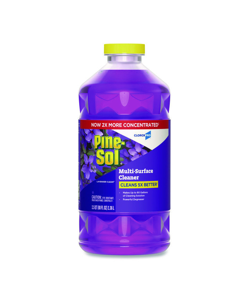 With Pine-Sol® Multi-Surface Cleaner from CloroxPro®, you only need one cleaner to fight tough dirt, grease and grime. This 2x concentrated formula delivers more cleaning power per drop and cleans 5x better than the previous Pine-Sol® scented formula. Easier to handle and easier to store, the space saving bottle size gives you more cleaning solution in a smaller bottle made of 30% less plastic. This multipurpose cleaner cleans right the first time, removing stains and deodorizing soft surfaces while leaving a pleasant scent. This powerful degreaser cuts through grime and soap scum fast and is safe for use on wood, tile, stone, porcelain and glass and more when used as directed on hard nonporous surfaces. Do not use on marble, aluminum, copper or wood that is unfinished, unsealed, unpainted, waxed, oiled or worn. Ideal for offices, daycares, schools, hotels, restaurants and more.