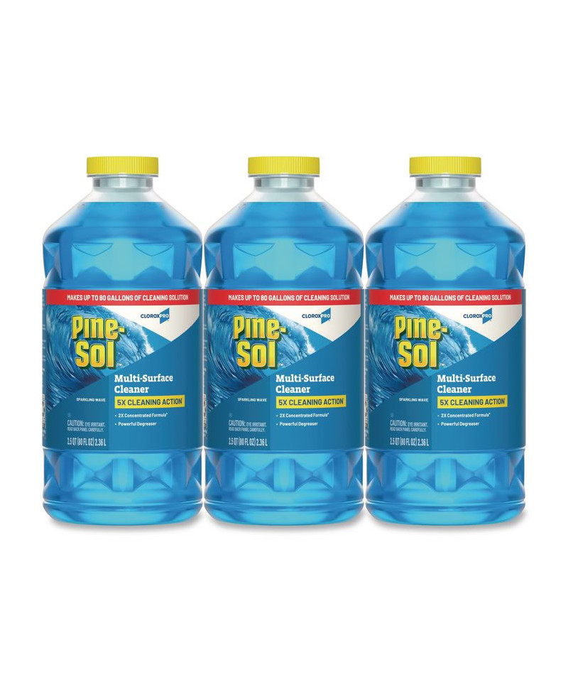 With Pine-Sol® Multi-Surface Cleaner from CloroxPro®, you only need one cleaner to fight tough dirt, grease and grime. This 2x concentrated formula delivers more cleaning power per drop and cleans 5x better than the previous Pine-Sol® scented formula. Easier to handle and easier to store, the space saving bottle size gives you more cleaning solution in a smaller bottle made of 30% less plastic. This multipurpose cleaner cleans right the first time, removing stains and deodorizing soft surfaces while leaving a pleasant scent. This powerful degreaser cuts through grime and soap scum fast and is safe for use on wood, tile, stone, porcelain and glass and more when used as directed on hard nonporous surfaces. Do not use on marble, aluminum, copper or wood that is unfinished, unsealed, unpainted, waxed, oiled or worn. Ideal for offices, daycares, schools, hotels, restaurants and more.