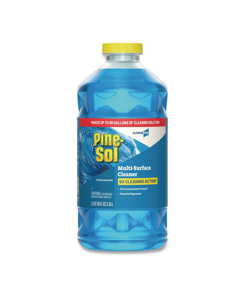 With Pine-Sol® Multi-Surface Cleaner from CloroxPro®, you only need one cleaner to fight tough dirt, grease and grime. This 2x concentrated formula delivers more cleaning power per drop and cleans 5x better than the previous Pine-Sol® scented formula. Easier to handle and easier to store, the space saving bottle size gives you more cleaning solution in a smaller bottle made of 30% less plastic. This multipurpose cleaner cleans right the first time, removing stains and deodorizing soft surfaces while leaving a pleasant scent. This powerful degreaser cuts through grime and soap scum fast and is safe for use on wood, tile, stone, porcelain and glass and more when used as directed on hard nonporous surfaces. Do not use on marble, aluminum, copper or wood that is unfinished, unsealed, unpainted, waxed, oiled or worn. Ideal for offices, daycares, schools, hotels, restaurants and more.