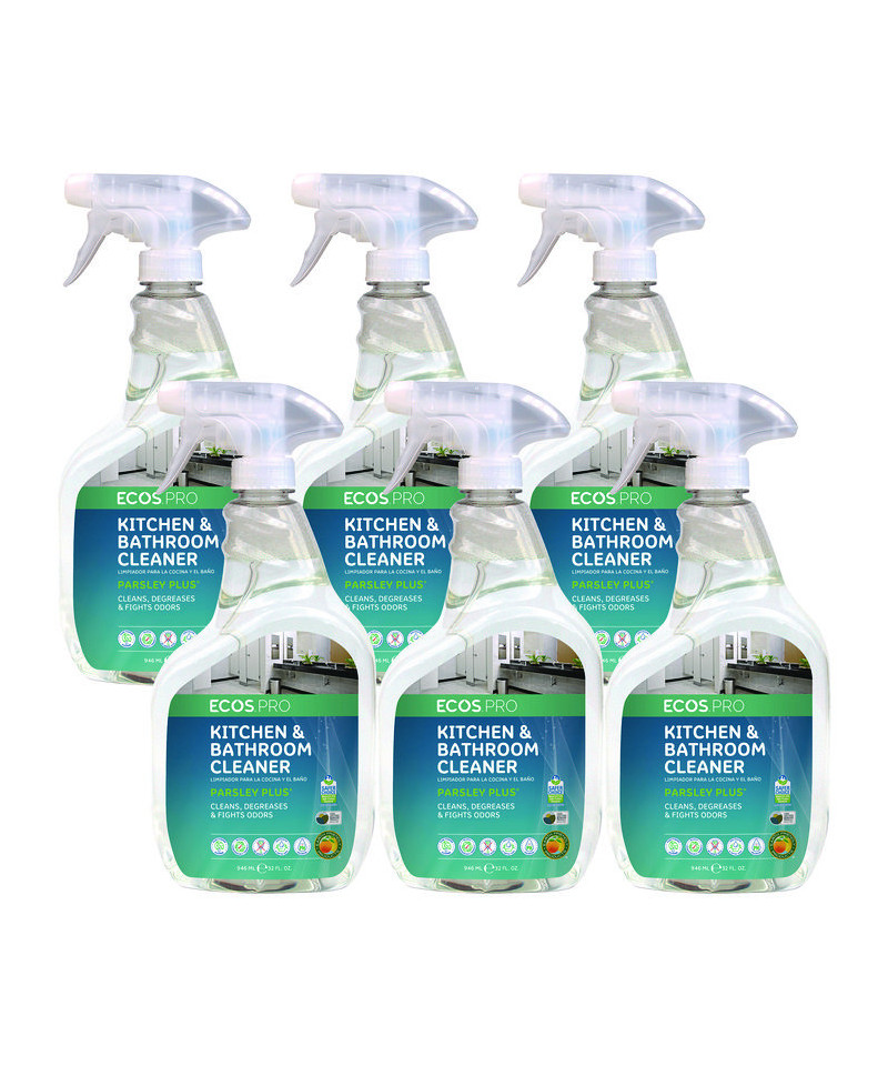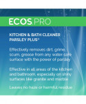 The ECOS PRO Parsley Plus all-purpose kitchen and bathroom cleaner and degreaser washes and fights odors with the natural power of parsley. This pH-balanced formula removes dirt, grease, grime, and scum from water-safe surfaces. Cleans and shines all areas of the kitchen and bathroom; works exceptionally well on granite and marble, leaving no haze or residue even on high-shine stone surfaces. Made using sustainable, plant-powered ingredients. Made without dyes; gray water and septic safe. Features a pleasant parsley scent. Not tested on animals. Manufactured in a facility that is LEED Zero Carbon, LEED Zero Waste, and LEED Zero Energy Certified.