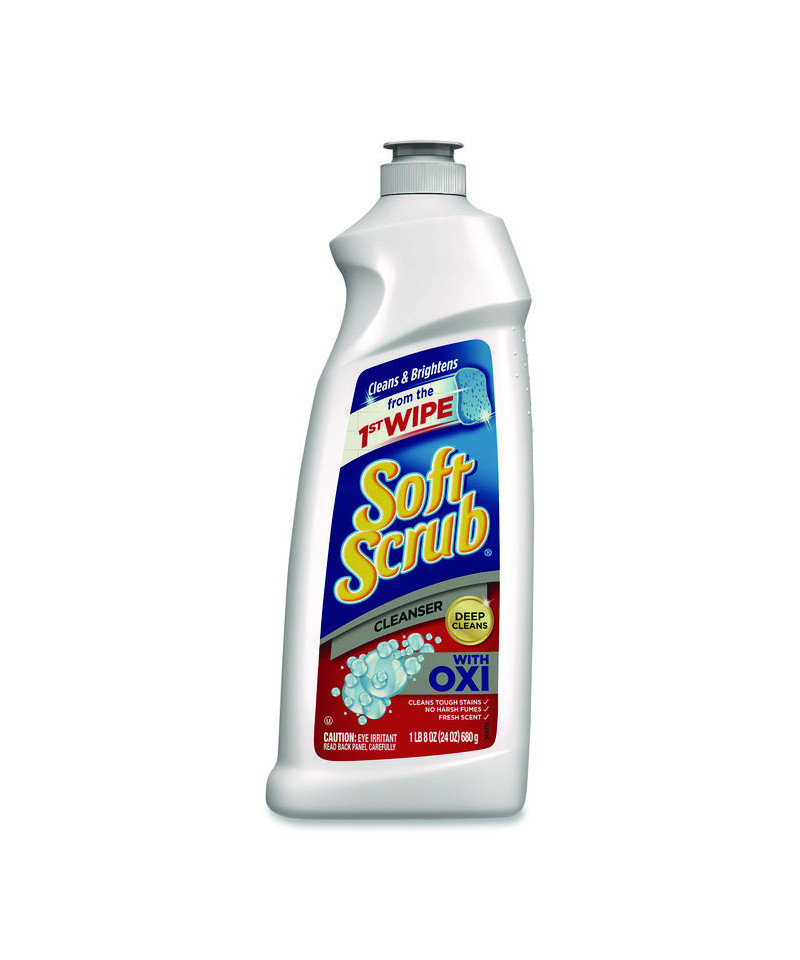 Cleanser is infused with millions of Oxi scrubbers that activate while you clean. Eliminates dirt, soap scum and mildew stains and keeps glass sparkling. Soft Scrub® Oxi Cleanser gives you a deep clean by penetrating the stain, resulting in a shiny clean surface. Cuts through whatever you can cook up, including kitchen grease, oil and grime. Safely cleans most countertops without scratching. Formulated for use on surfaces throughout the kitchen and bathroom, cleanser removes wine coffee, juice, and tea stains as well as many other stains. Makes grout cleaning easy and leaves tiles gleaming. Keeps toilets sparkling clean.