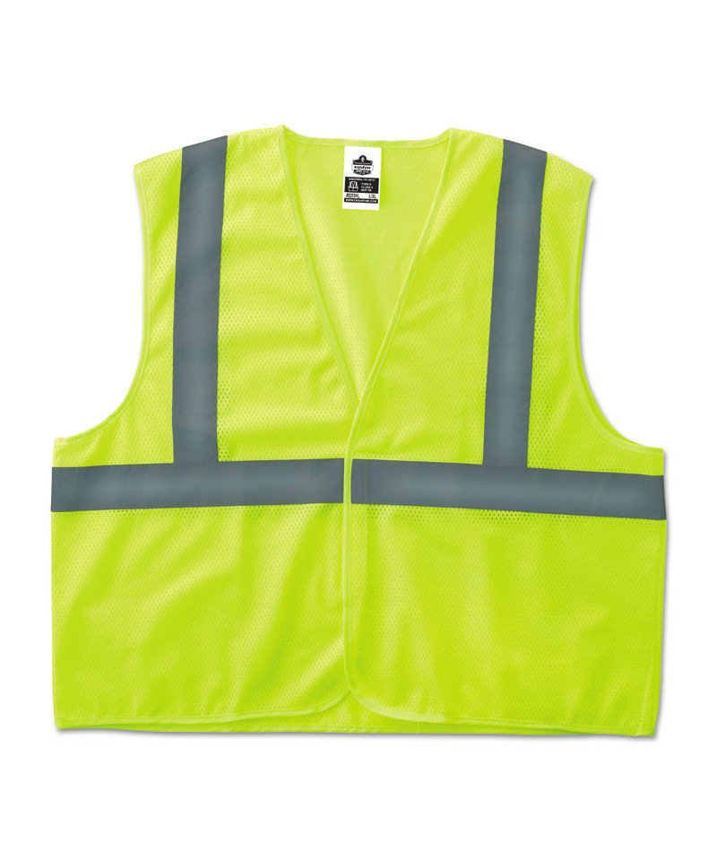 Sturdy mesh vest is a great value for everyday on-the-job applications—excellent for use in road construction or on utility and survey crews. Bright neon coloring with silver stripes ensures high visibility. Convenient hook and loop closure for easy wear.