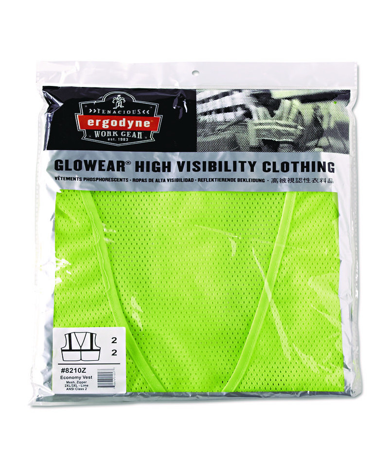 Economy safety vest in bright, eye-catching colors is made from sturdy, ANSI-compliant polyester mesh. A zipper closure ensures that vest stays on and allows easy removal. Reflective, 2" Level 2 ANSI-compliant tape increases employee safety and visibility.