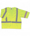 Economy polyester mesh vests for visibility on the job—they're an excellent choice for use in road construction, utility crews, survey crews and more. Bright neon coloring with reflective striping ensures high visibility. Hook and loop front closure for easy on/easy off.