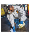 KleenGuard™ Personal Protective Equipment (PPE) enables rather than inhibits allowing for maximum productivity and safety for you and your employees. When your workers are in nonstop contact with liquid splashes and particles, KleenGuard™ A40 Liquid and Particle Protection Coveralls are a great addition to offer your team comfortable protective clothing. Features to provide more protection include the seamless front (for primary exposure area) and 1 inch zipper flap. They feature REFLEX design, which offers excellent fit and comfort (with elastic in the back) and freedom of movement. Made of breathable, microporous film to keep out debris, non-hazardous liquid chemicals and dry particulates, the KleenGuard™ A40 material gives your employees a better liquid barrier and a better particulate barrier than the leading competitor. These coveralls with hood pass NFPA 99 for antistatic materials, and pass ASTM F1670 testing for penetration of blood and bodily fluids. Popular industries using this product include liquid handling, aviation, pharmaceutical manufacturing, general manufacturing and so much more. Making the right Personal Protection choice is difficult. Perform with distinction with KleenGuard™ Personal Protective Equipment (PPE).