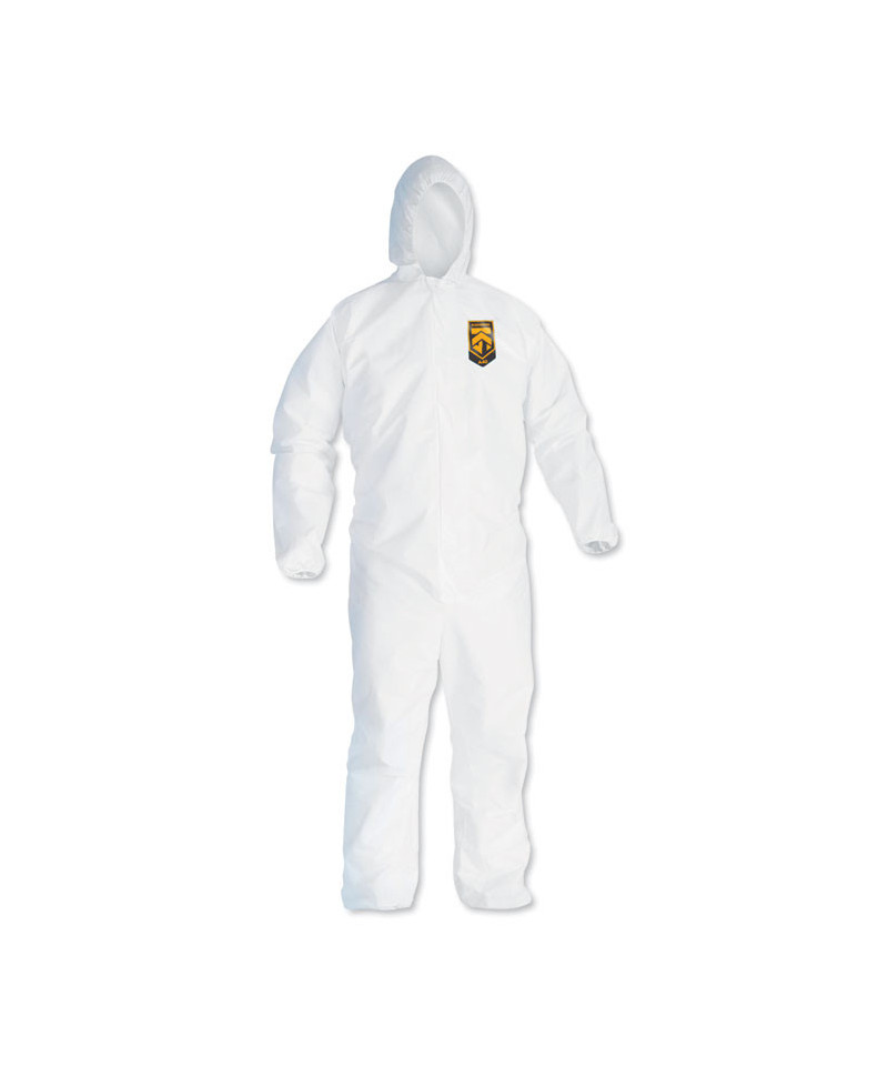 KleenGuard™ Personal Protective Equipment (PPE) enables rather than inhibits allowing for maximum productivity and safety for you and your employees. When your workers are in nonstop contact with liquid splashes and particles, KleenGuard™ A40 Liquid and Particle Protection Coveralls are a great addition to offer your team comfortable protective clothing. Features to provide more protection include the seamless front (for primary exposure area) and 1 inch zipper flap. They feature REFLEX design, which offers excellent fit and comfort (with elastic in the back) and freedom of movement. Made of breathable, microporous film to keep out debris, non-hazardous liquid chemicals and dry particulates, the KleenGuard™ A40 material gives your employees a better liquid barrier and a better particulate barrier than the leading competitor. These coveralls with hood pass NFPA 99 for antistatic materials, and pass ASTM F1670 testing for penetration of blood and bodily fluids. Popular industries using this product include liquid handling, aviation, pharmaceutical manufacturing, general manufacturing and so much more. Making the right Personal Protection choice is difficult. Perform with distinction with KleenGuard™ Personal Protective Equipment (PPE).