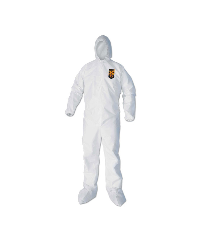 KleenGuard™ Personal Protective Equipment (PPE) enables rather than inhibits allowing for maximum productivity and safety for you and your employees. When your workers are in nonstop contact with liquid splashes and particles, KleenGuard™ A40 Liquid and Particle Protection Coveralls are a great addition to offer your team comfortable protective clothing. Features to provide more protection include the seamless front (for primary exposure area) and 1 inch zipper flap. They feature REFLEX design, which offers excellent fit and comfort (with elastic in the back) and freedom of movement. Made of breathable, microporous film to keep out debris, non-hazardous liquid chemicals and dry particulates, the KleenGuard™ A40 material gives your employees a better liquid barrier and a better particulate barrier than the leading competitor. These coveralls with hood pass NFPA 99 for antistatic materials, and pass ASTM F1670 testing for penetration of blood and bodily fluids. Popular industries using this product include liquid handling, aviation, pharmaceutical manufacturing, general manufacturing and so much more. Making the right Personal Protection choice is difficult. Perform with distinction with KleenGuard™ Personal Protective Equipment (PPE).