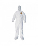 KleenGuard™ Personal Protective Equipment (PPE) enables rather than inhibits allowing for maximum productivity and safety for you and your employees. When your workers are in nonstop contact with liquid splashes and particles, KleenGuard™ A40 Liquid and Particle Protection Coveralls are a great addition to offer your team comfortable protective clothing. Features to provide more protection include the seamless front (for primary exposure area) and 1 inch zipper flap. They feature REFLEX design, which offers excellent fit and comfort (with elastic in the back) and freedom of movement. Made of breathable, microporous film to keep out debris, non-hazardous liquid chemicals and dry particulates, the KleenGuard™ A40 material gives your employees a better liquid barrier and a better particulate barrier than the leading competitor. These coveralls with hood pass NFPA 99 for antistatic materials, and pass ASTM F1670 testing for penetration of blood and bodily fluids. Popular industries using this product include liquid handling, aviation, pharmaceutical manufacturing, general manufacturing and so much more. Making the right Personal Protection choice is difficult. Perform with distinction with KleenGuard™ Personal Protective Equipment (PPE).