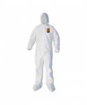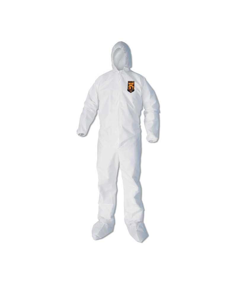 KleenGuard™ Personal Protective Equipment (PPE) enables rather than inhibits allowing for maximum productivity and safety for you and your employees. When your workers are in nonstop contact with liquid splashes and particles, KleenGuard™ A40 Liquid and Particle Protection Coveralls are a great addition to offer your team comfortable protective clothing. Features to provide more protection include the seamless front (for primary exposure area) and 1 inch zipper flap. They feature REFLEX design, which offers excellent fit and comfort (with elastic in the back) and freedom of movement. Made of breathable, microporous film to keep out debris, non-hazardous liquid chemicals and dry particulates, the KleenGuard™ A40 material gives your employees a better liquid barrier and a better particulate barrier than the leading competitor. These coveralls with hood pass NFPA 99 for antistatic materials, and pass ASTM F1670 testing for penetration of blood and bodily fluids. Popular industries using this product include liquid handling, aviation, pharmaceutical manufacturing, general manufacturing and so much more. Making the right Personal Protection choice is difficult. Perform with distinction with KleenGuard™ Personal Protective Equipment (PPE).