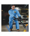 Three-layer fabric construction features a middle layer of microporous film that allows heat and sweat vapor to escape while protecting against dry particulates and liquid. Passes ASTM F1670/1671 testing for penetration of blood, body fluids and blood-borne pathogens. Patented REFLEX* Design is 7-1/2 times less likely to rip out than ANSI minimums — provides 12% more chest room and 6% longer body length.