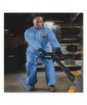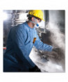 Three-layer fabric construction features a middle layer of microporous film that allows heat and sweat vapor to escape while protecting against dry particulates and liquid. Passes ASTM F1670/1671 testing for penetration of blood, body fluids and blood-borne pathogens. Patented REFLEX* Design is 7-1/2 times less likely to rip out than ANSI minimums — provides 12% more chest room and 6% longer body length.