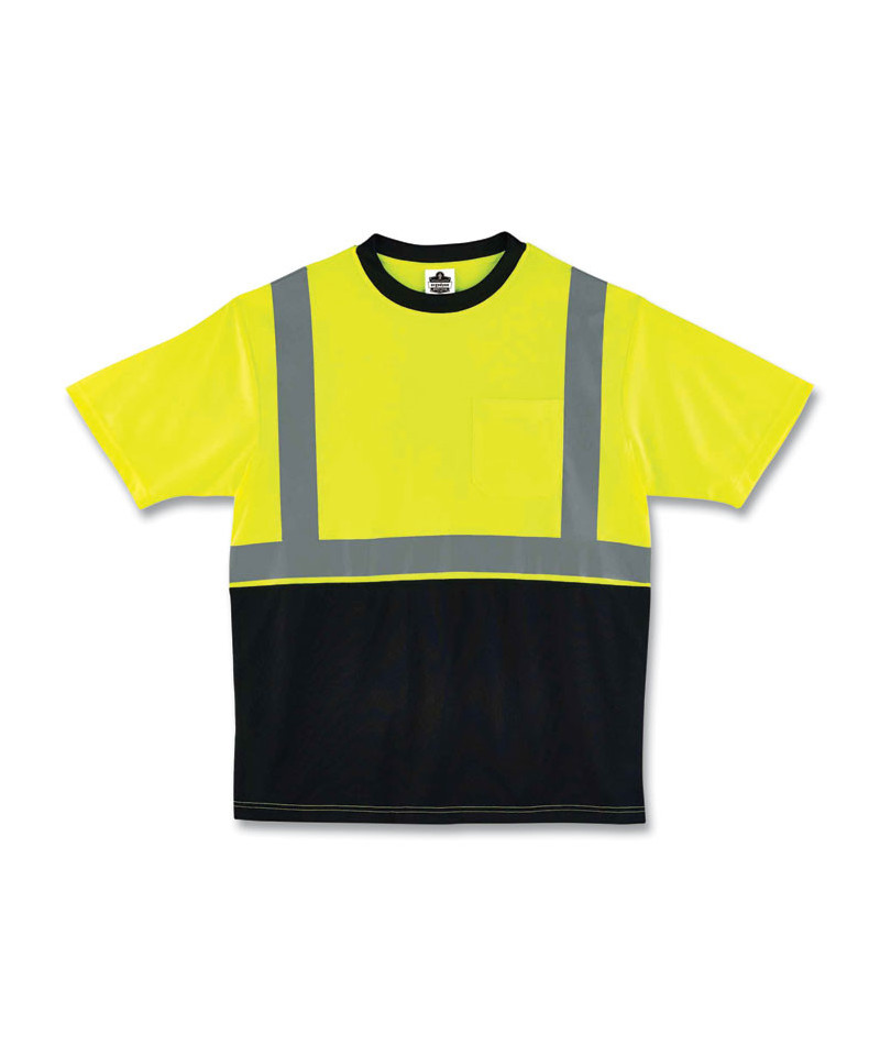 GloWear 8289BK Class 2 Hi-Vis T-Shirt with Black Bottom, Medium, Lime