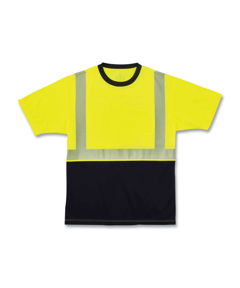 GloWear 8280BK Class 2 Performance T-Shirt with Black Bottom, Polyester, Small, Lime