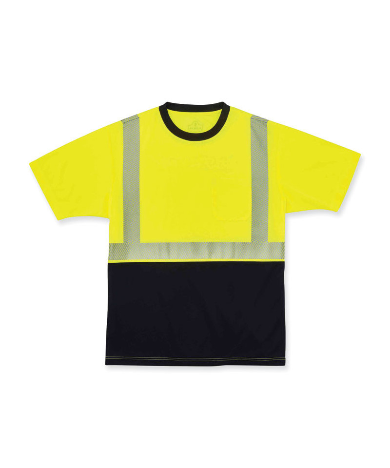 GloWear 8280BK Class 2 Performance T-Shirt with Black Bottom, Polyester, X-Large, Lime