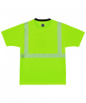 Class 2 black front performance T-shirt made of lightweight birdseye knit paired with 3M Scotchlite Comfort Trim. Moisture wicking treatment and armpit vents keep the user cool and dry. 30+ UPF for protection against harmful UV. An outside chest pocket to keep small items accessible. Black front and collar hide dirt and wear.